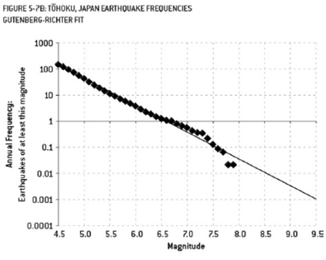 • Fukishima engineers used a nonlinear model which predicted a >9 MW earthquake had a 13,000-year RP